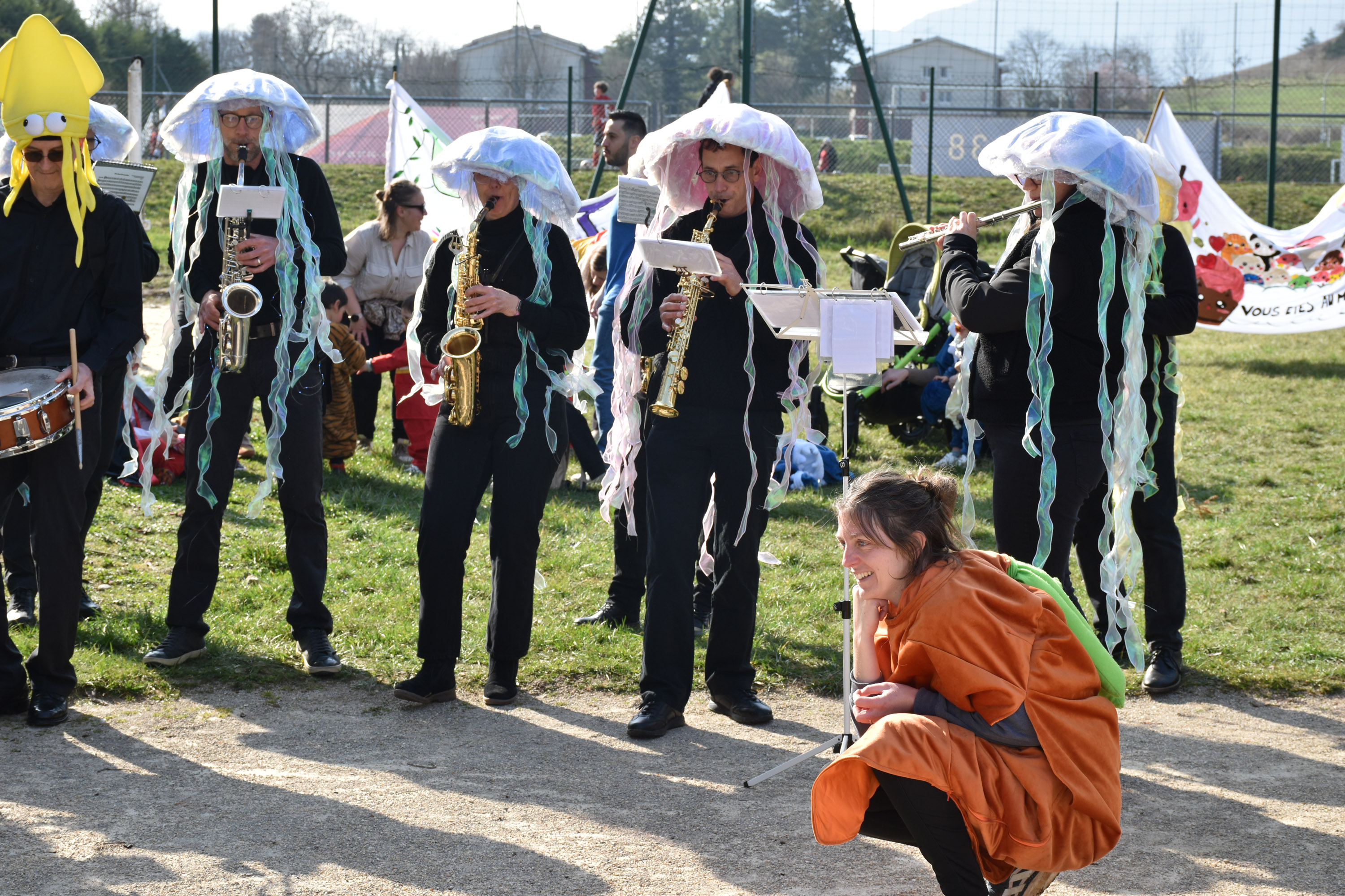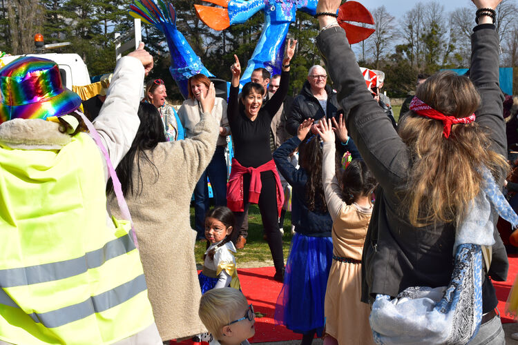 Plus de 300 personnes, dans un beau moment de fête populaire : merci à tous nos super-héros, princesses, chevaliers, lapins géants, et autres animaux surprenants ...