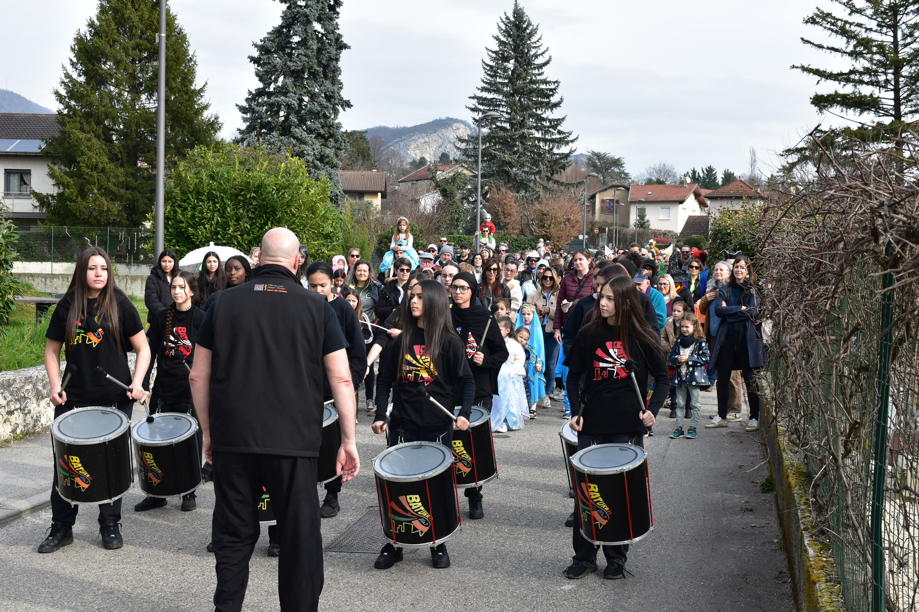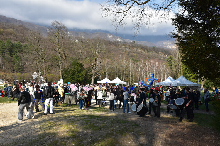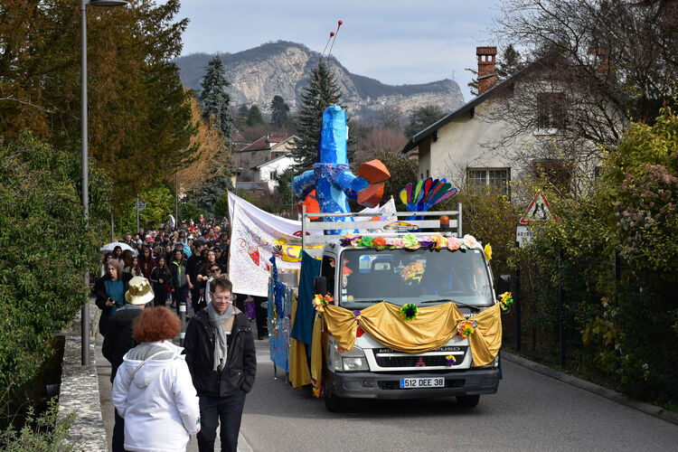 Le cortège est parti de la place Hector Berlioz, animée par le marché du samedi, pour rejoindre le parc de la Bâtie. En tête, le char "gambas géante", décoré par les habitants lors d’ateliers intergénérationnels à La Cascade, et la BatukaVI, batucada d’enfants de la région grenobloise, ont rythmé le défilé et mis tout le monde dans l’ambiance.