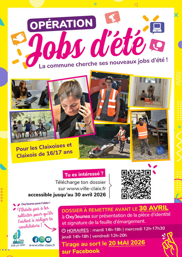 La commune réitère son dispositif "Job Jeunes" permettant aux jeunes Claixois de 16-17 ans une première immersion dans la vie professionnelle en leur proposant :
