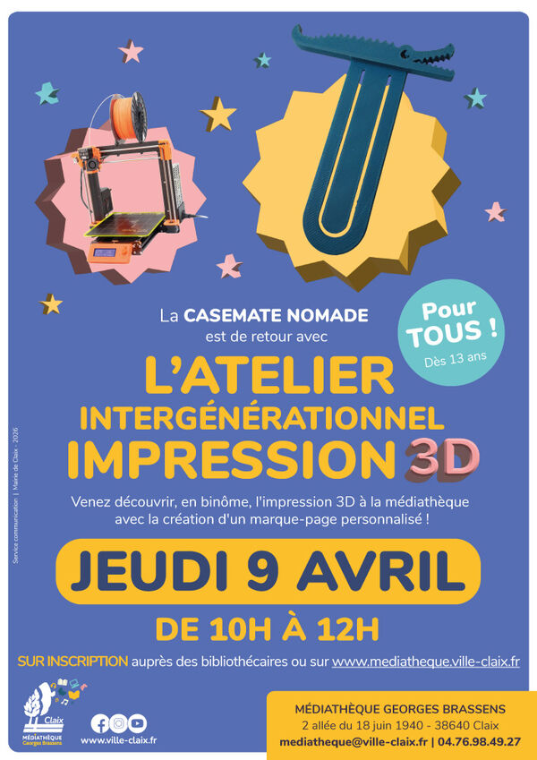 Inscription obligatoire : https://mediatheque.ville-claix.fr