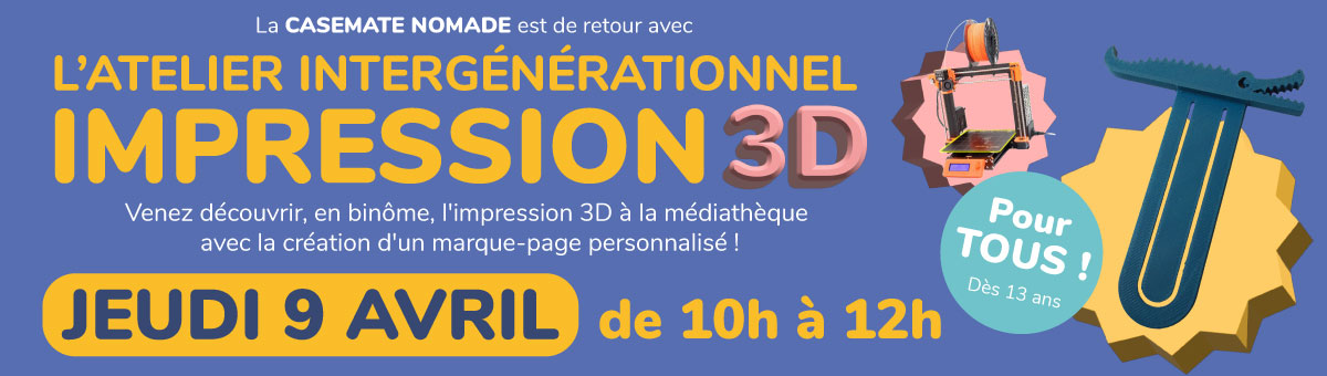 Envie de découvrir l’impression 3D de façon ludique ? Participez à un atelier créatif pour imaginer et fabriquer votre propre marque-page !